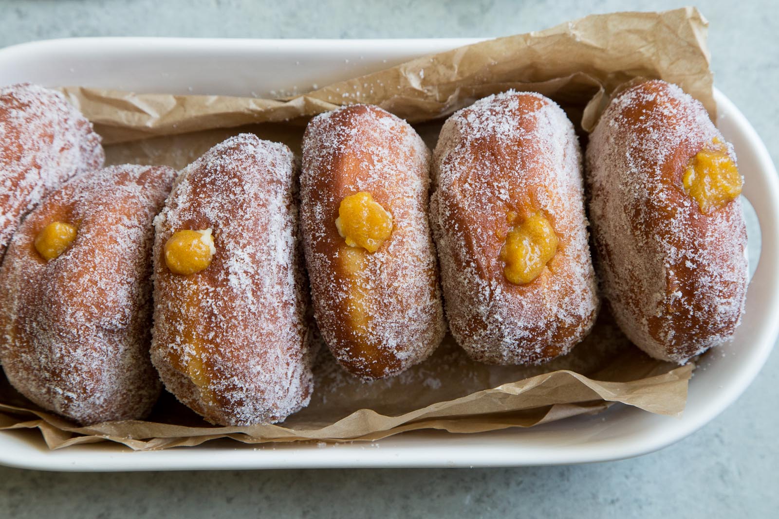 If you love peaches and love doughnuts then this recipe is worth the time and effort it takes to make it all come together. Pastry cream and homemade peach preserves get piped into the freshly made doughnuts for an unspeakably tasty treat.