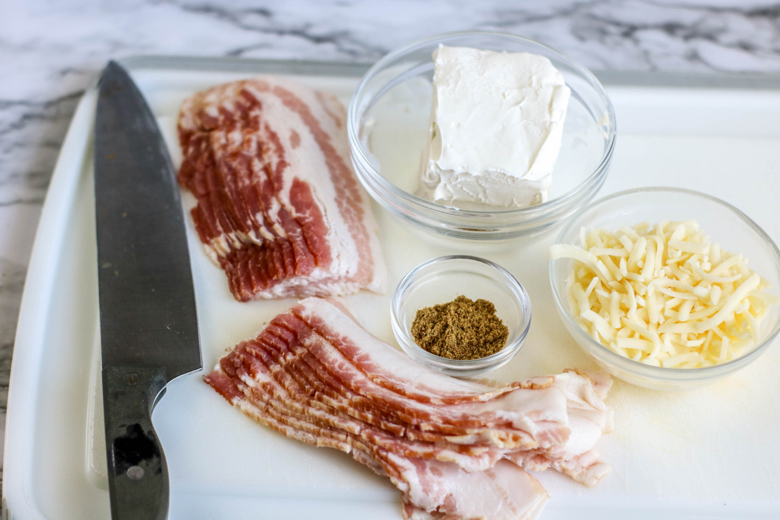 - 10 slices bacon cut in half lengthwise