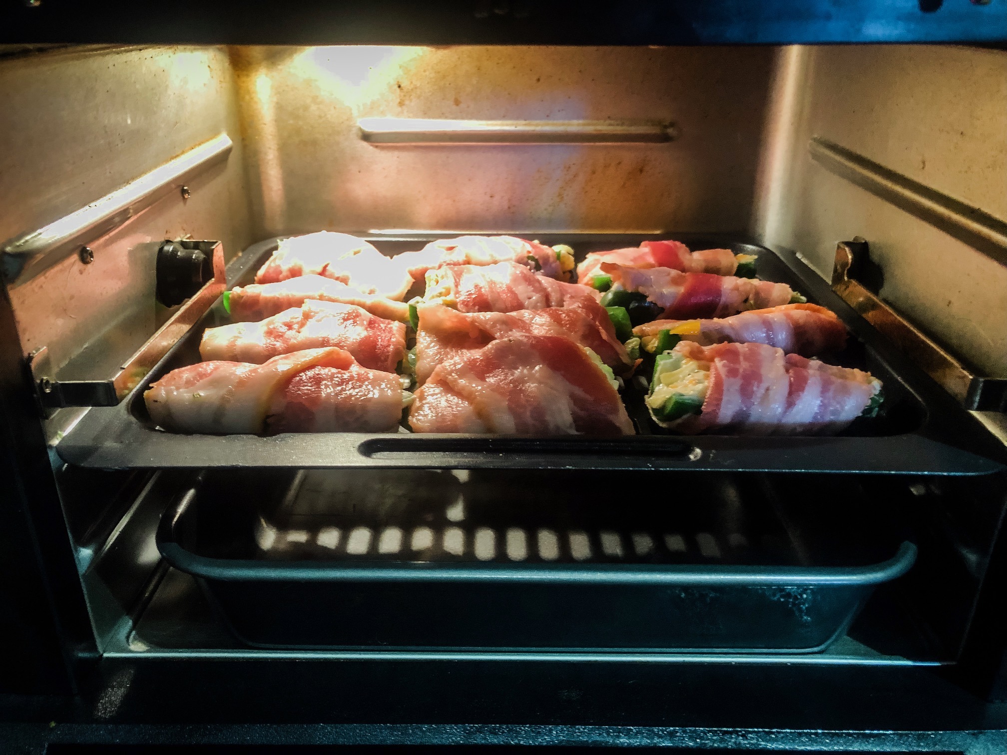 If you place the poppers directly on the baking sheet instead of a rack, the bacon on the bottom won’t get cooked and crisp.