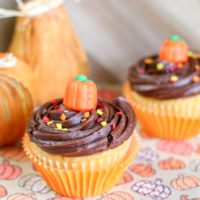 - Before serving, place a candy pumpkin and several candy corn pieces on top of each glass