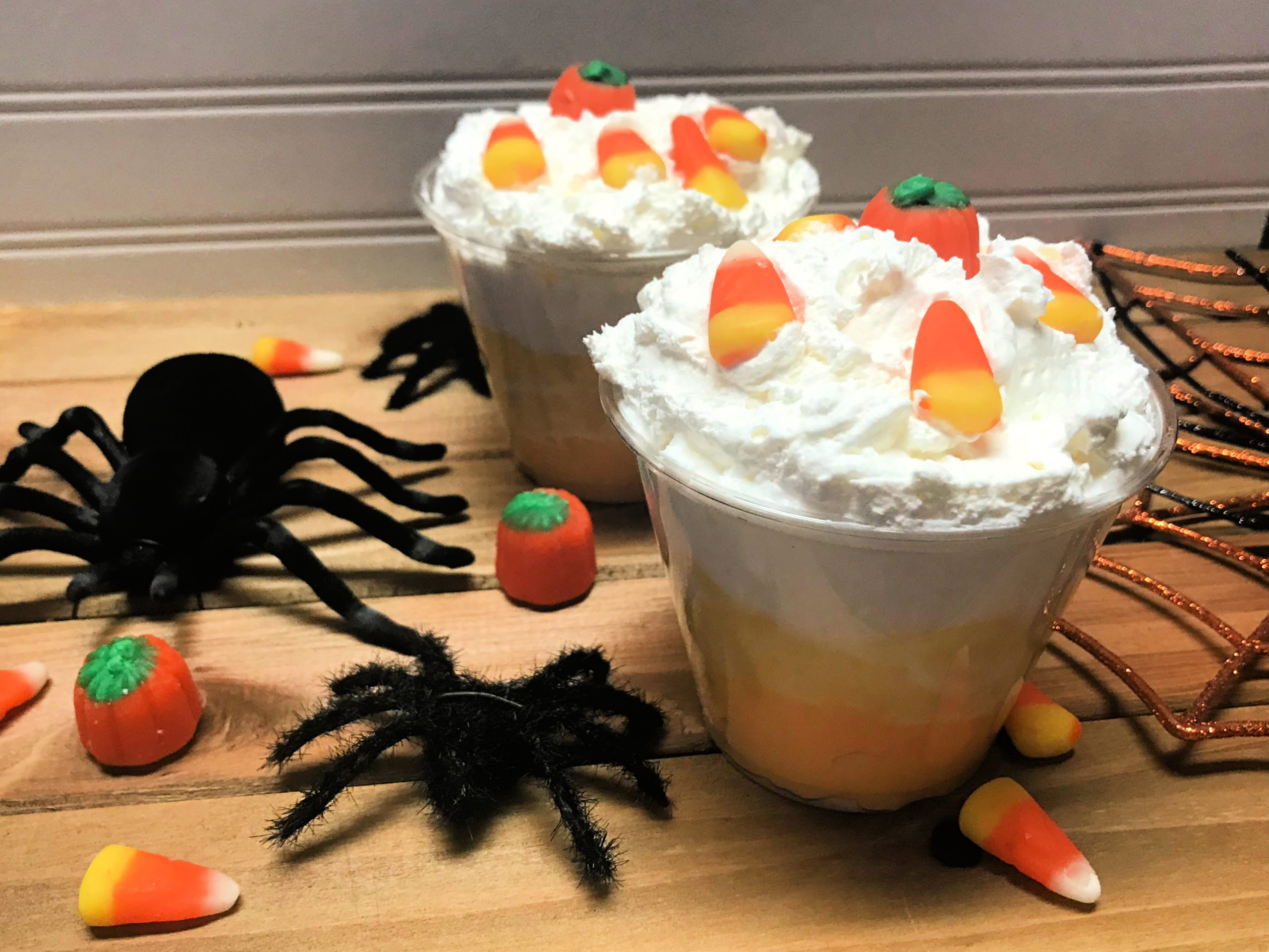 Made with Vanilla Pudding, food colouring, and whipped cream, it’s whimsical, fun and tastes good, as long as you like Vanilla Pudding of course. Now, if you want it to TASTE like Candy Corn, you can easily grab this flavouring from Amazon (they have EVERYTHING) and add it sparingly to your pudding. It’s potent. I’ll post my affiliate link at the bottom.