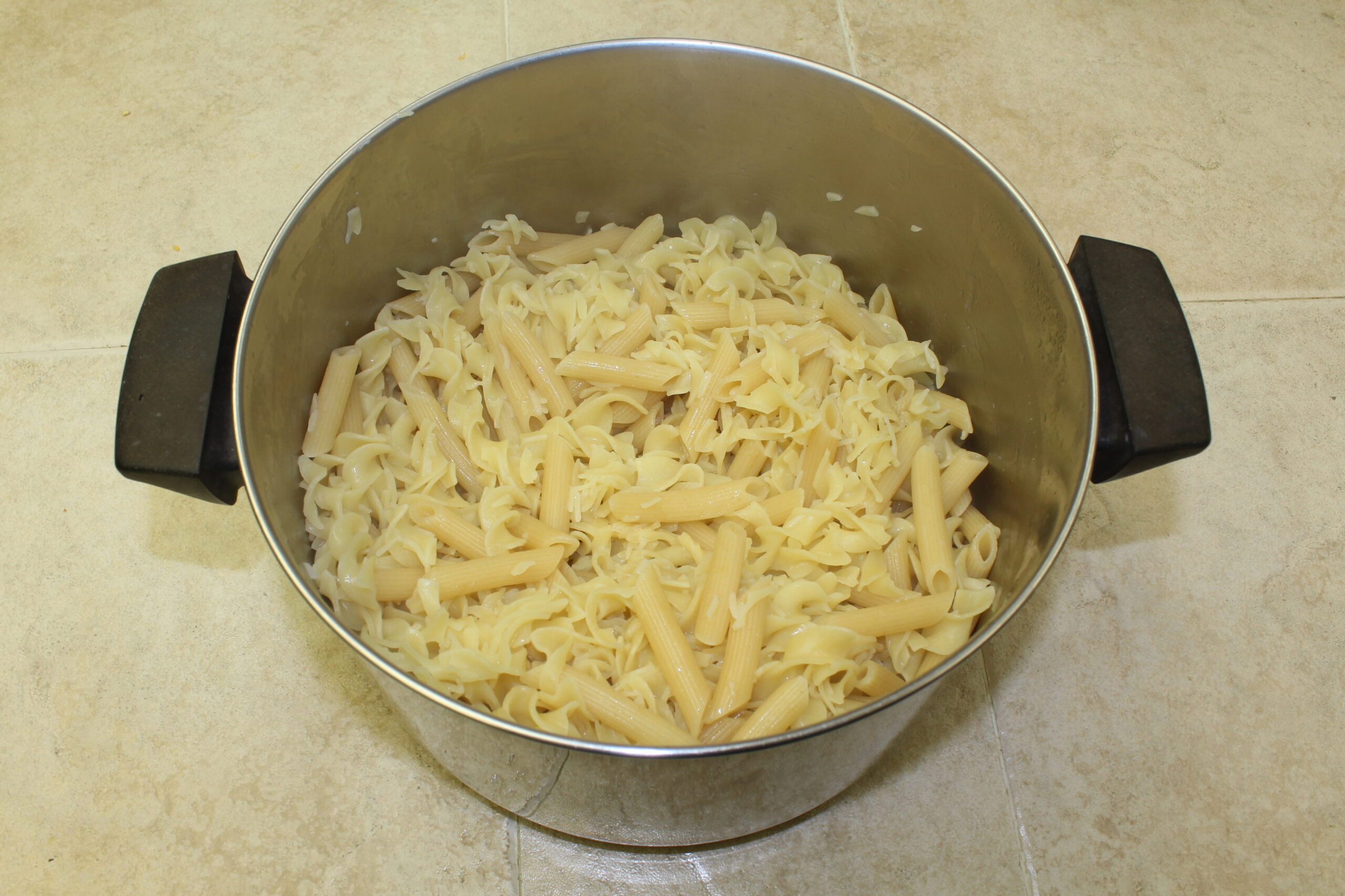 - Bring water to boil then add noodles. Cook till noodles begin to soften but are still firm. Remember that noodles will continue to cook once they're mixed with other ingredients in the oven. If you are using a combination of egg noodles and penne, add the egg noodles after the penne has been cooking for about 4 minutes. Egg noodles cook much faster and you don't want them overcooked and mushy.