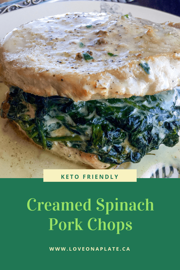 These Creamed Spinach Stuffed Pork Chops are a flavorful one-pan meal and only take about half an hour to get on the table. Perfect for those busy weeknights when you want something a little healthier than take out.