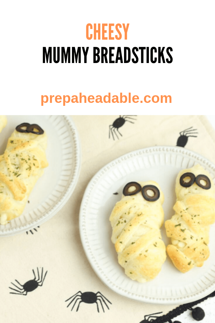 Whether you’re planning a Halloween party or simply looking for a fun Halloween dinner idea, you’re going to love these adorable cheesy stuffed mummy bread sticks! On top of being cute Fun Halloween Food, Mummy breadsticks are so easy to make. All you need are a few common ingredients and a little bit of time to weave the “mummy wrap” to create a creepy touch for your next Halloween get-together.