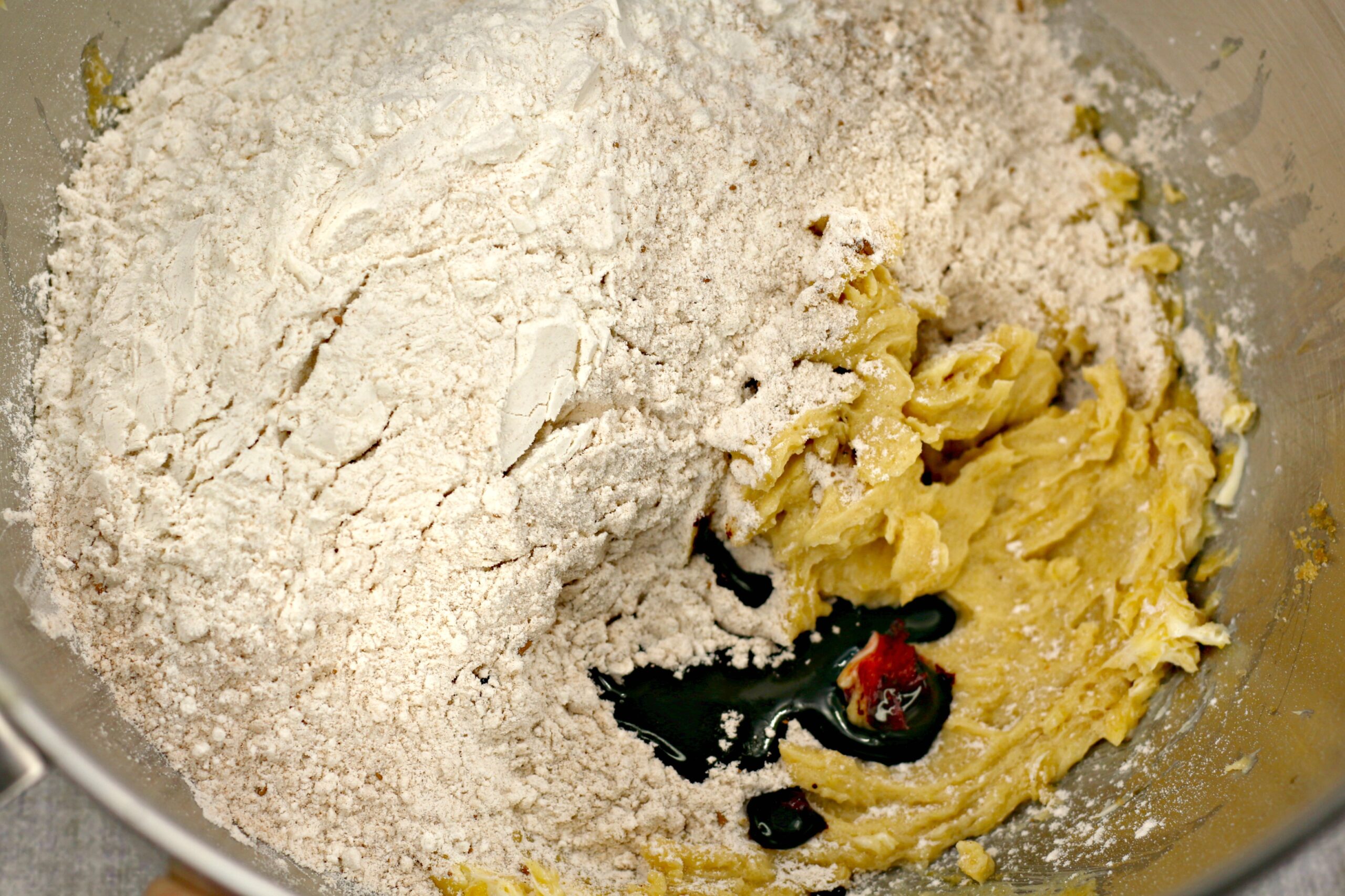 - Gradually mix in the flour, food coloring, and cocoa powder until soft dough forms.