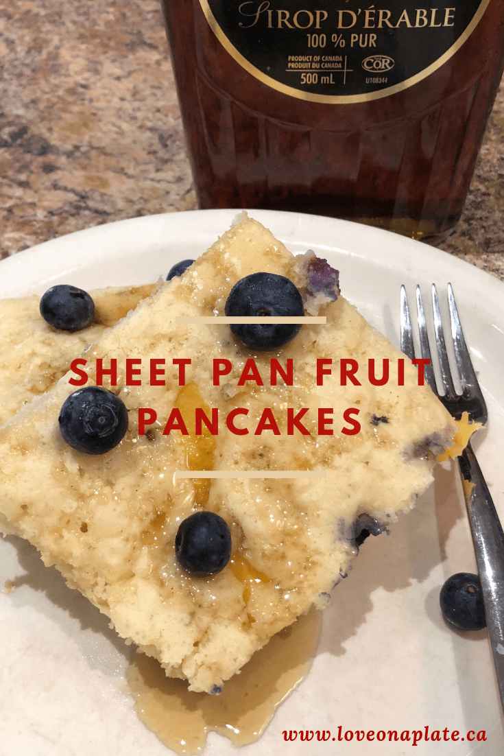 These Sheet Pan Fruit Pancakes are the perfect solution to getting breakfast on the table hot and fresh!   In under 30 minutes you have warm, fruity pancakes ready to serve  a crowd.