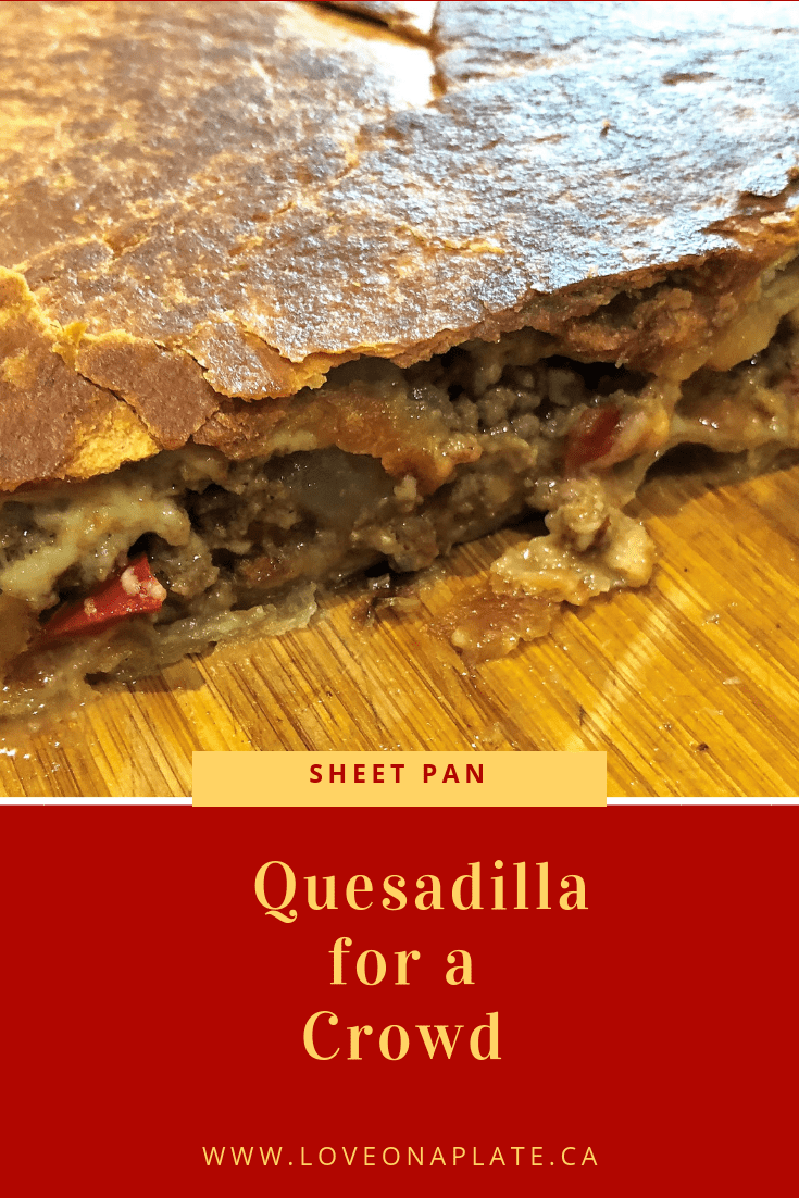 Sheet Pan Quesadilla for a Crowd, yes, you CAN make quesadillas for 8-10 people in one pan and everyone eats at the same time. Imagine a nice meal where everything is served hot and if you can believe it, you can also easily make 2 different fillings in on one sheet pan! Parents of picky eaters this Sheet Pan Quesadilla is for YOU!