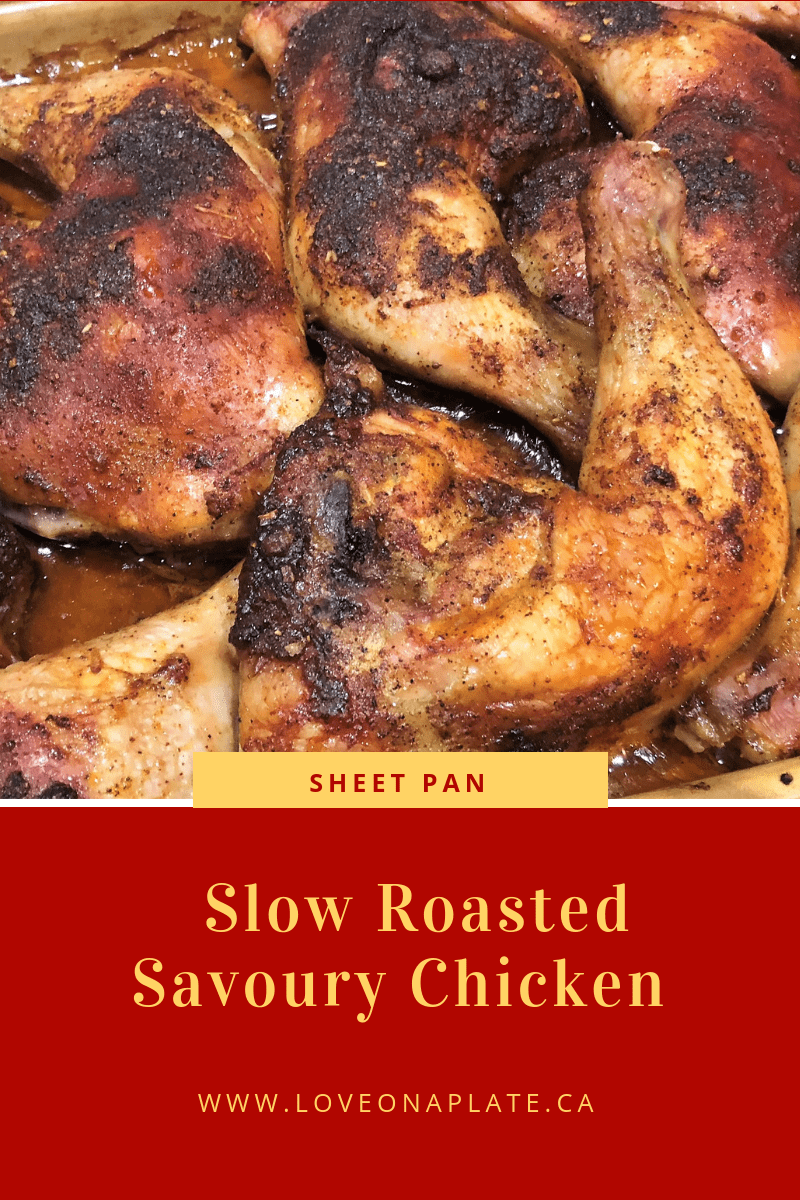 This recipe for Slow Roasted Chicken Quarters is so easy to prepare, and the results are truly outstanding. Cooked low and slow the chicken is tender and moist, with savoury pan juices you can use instead of gravy.