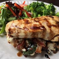 To serve, place a stuffed chicken breast on each plate and drizzle with balsamic glaze. Pairs well with a mixed green salad or roasted vegetables.