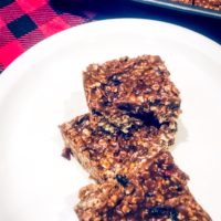 In a large mixing bowl combine oats, dried fruit, chopped nuts, chocolate chips* and peanut butter honey mixture. Stir well to combine.